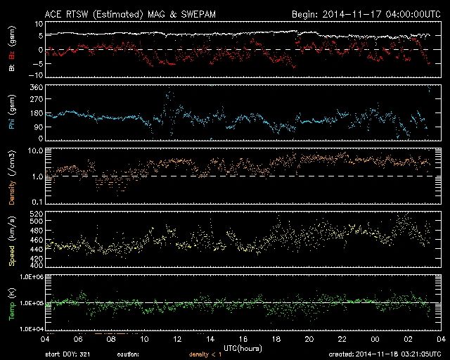 速度にバラつきがあります。一時500km/s近くまで上がったようですが、現在は430~460km/s前後で推移しています。
