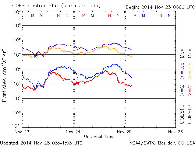 11/24 13時~16時(UT)くらいにかけて反応が出ました。20時(UT)くらいにも少し反応があります。
