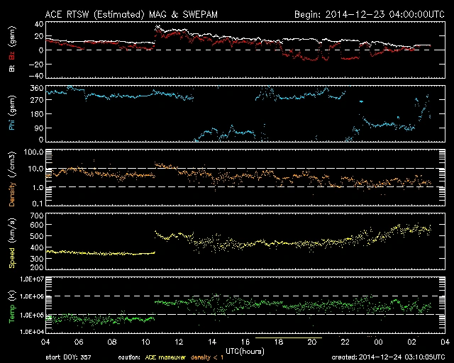 ギザギザしたラインが続いています。12/23 11時(UT)くらいに少し反応があり、18時(UT)くらいからはやや乱れが出ています。