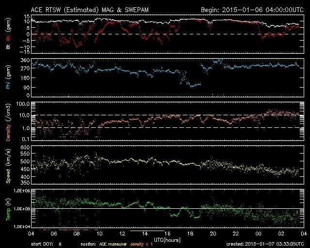 一時的には550km/sを超えたようです。速度は徐々に下がり、450km/s前後で推移しています。