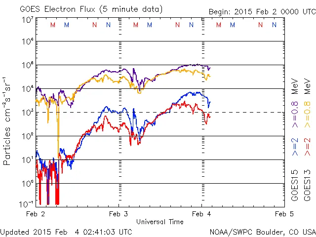 所々トゲのような小さな反応がいくつも出ています。02/03 17時~22時(UT)くらいにかけては、少しギザギザしたラインでした。
