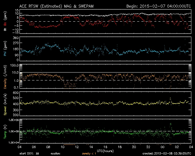一時500km/s近くまで上がったようですが、引き続き420km/s前後で推移しています。