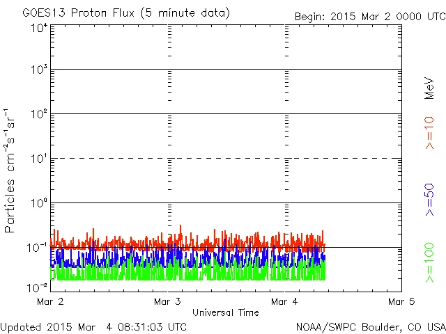X線チャートのレベルは昨日のM8.2以降、下がり続けて、やや低い状態になっています。