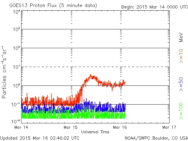 03/15 06時(UT)くらいから上昇し、少し下がった後、現在横ばい。(C9.1のフレアによるものだと思います)