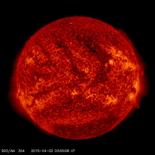 ※北半球の正面やや東寄りにある大きなコロナホールの影響が04/03~04/04にかけて届く模様。