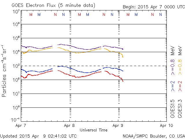 太陽フレアと黒点数(2015年04月09日更新) ※CME影響下