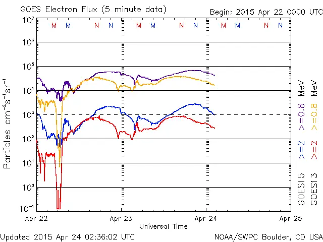 04/22 06時(UT)くらいから徐々にレベルが上がり、微増したまま推移しています。