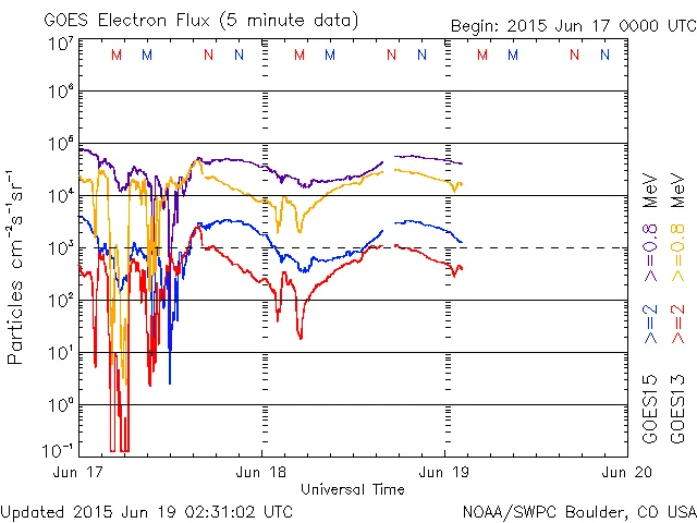 太陽フレアと黒点数(2015年06月19日更新)※M3中規模&CME到着予測(外乱長時間)
