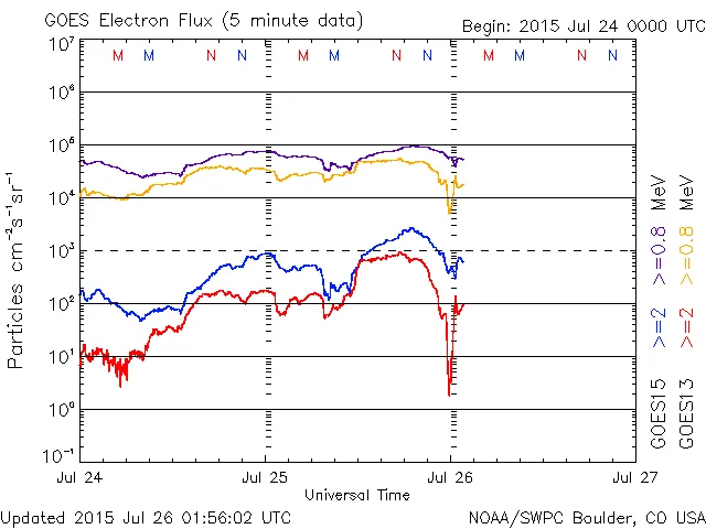 07/25 23時(UT)くらいに強めの反応がありました。やや乱れの兆候がありますので、乱れが出るようなら要注意。