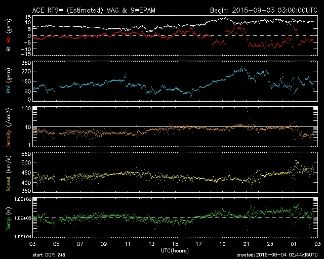 09/03 13時(UT)前後に少し乱れがありました。その後、22時(UT)以降、やや幅のあるラインになって、乱れの兆候も見られます。