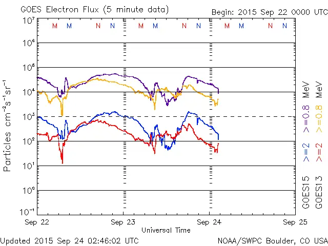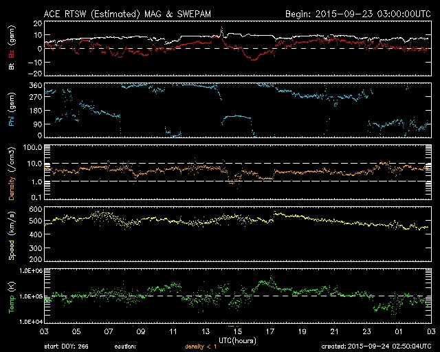 UTで24日になった頃から、やや乱れの兆候があります。この後乱れが出るようなら要注意。