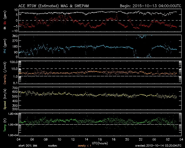 巨大なコロナホールの影響下にあるようです。ご注意ください。