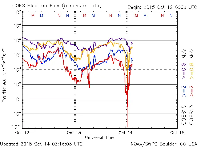 10/13 07時(UT)前後、08時(UT)くらいに反応があった後、15時(UT)くらいにやや強めの反応が出ました。ご注意ください。