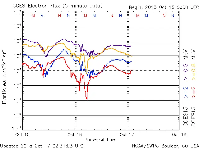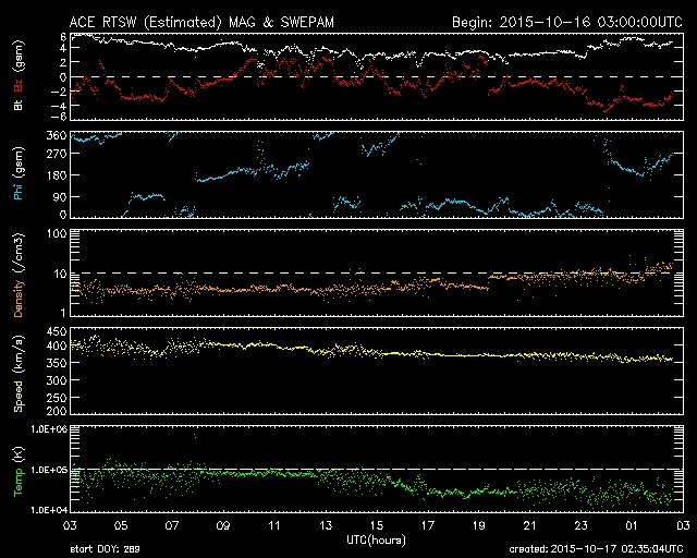 10/16 14時(UT)くらいにトゲのような反応がありましたが、概ね穏やかな推移です。