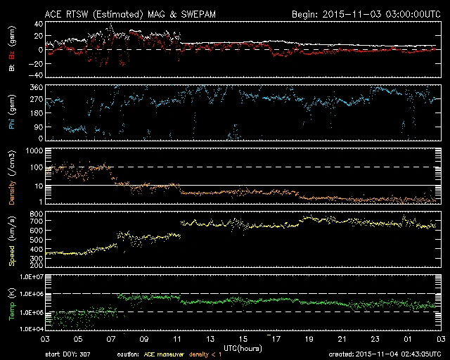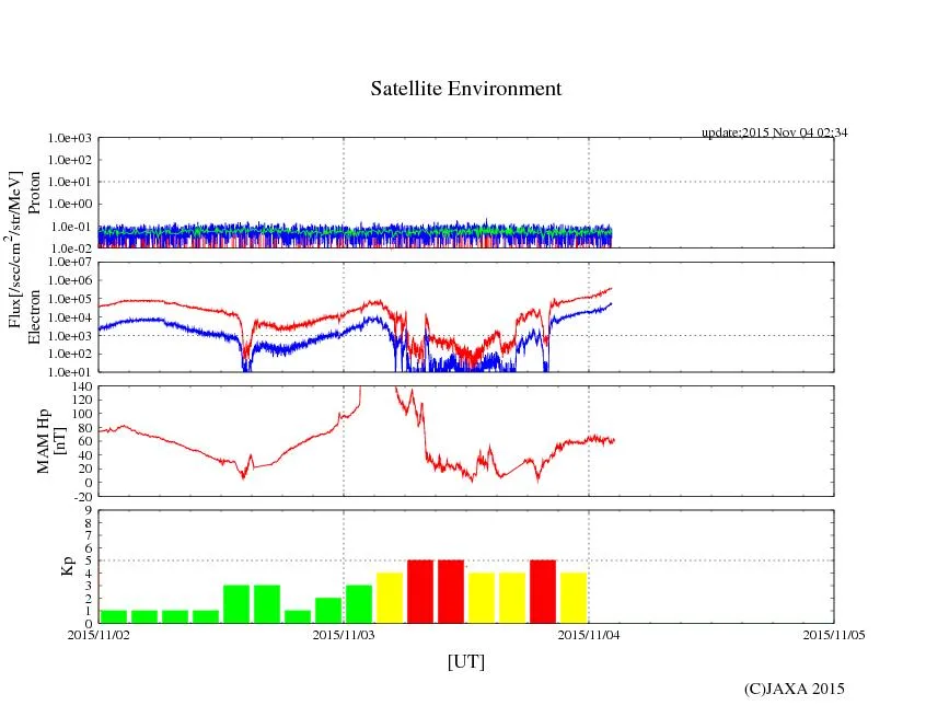 激しい乱れが出ています。11/03 08~13時(UT)くらいまでは、チャートを振り切った状態です。