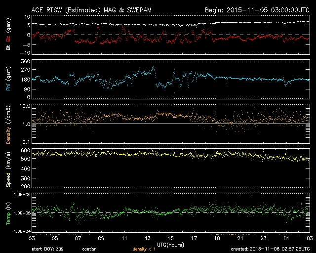 11/05 07時(UT)くらいから乱れ始め、10時、13時の後、16時前後に強めの反応が出ました。