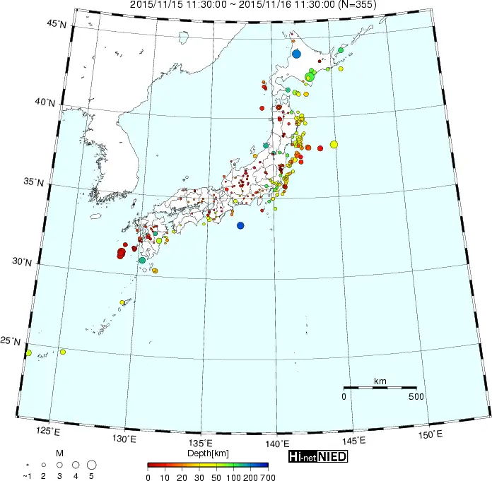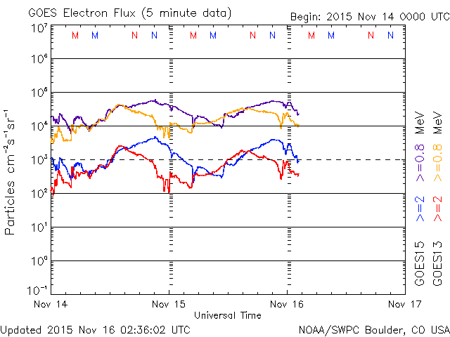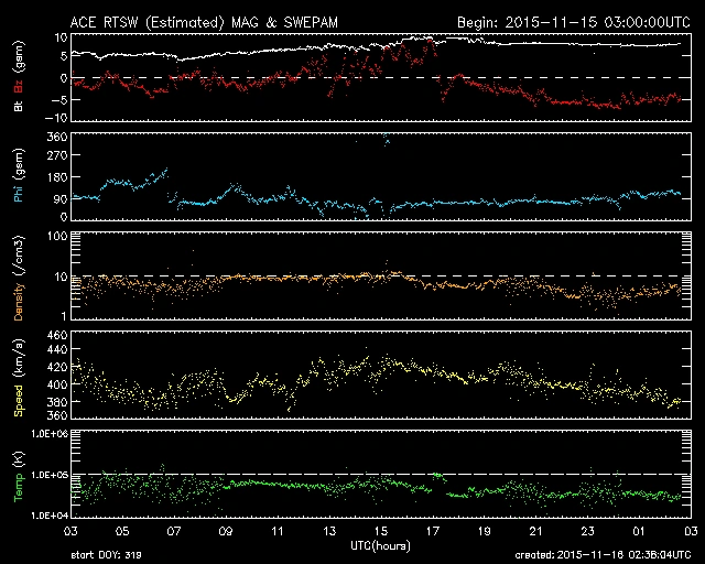 11/15、22時(UT)頃からやや乱れたラインになっていて、所々小さな反応も出ていますが、大きな乱れや反応は出ていません。
