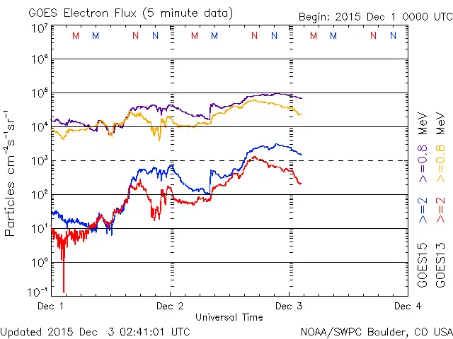 所々ごく小さな反応があり、12/02 14時(UT)くらいにはピンポイントのやや強めの反応が出ましたが、それ以外は概ね穏やかな推移です。