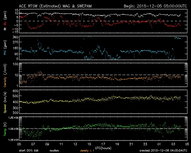 非常に穏やかな推移でしたが、12/05 14時(UT)くらいから16時(UT)くらいまで乱れが出ました。