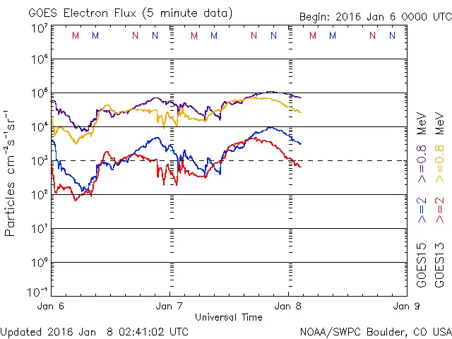太陽フレアと黒点数(2016年01月08日更新) ※コロナホール影響下