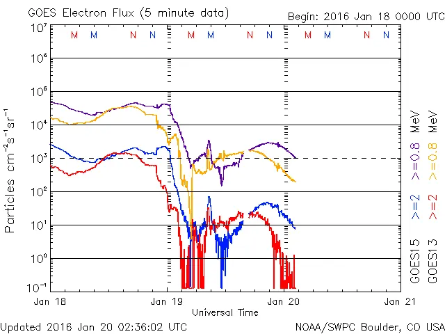 01/19 03時(UT)くらいから大きく落ち込み、12時(UT)くらいまで乱れが出ました。