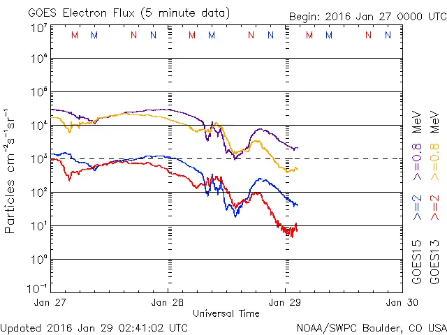 概ね穏やかな推移だったのですが、01/28 06時(UT)くらいからレベルが下がり始め、14時(UT)くらいまで少し乱れがありました。