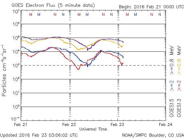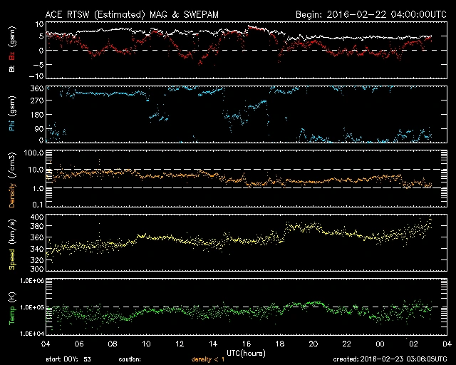 02/22 16時(UT)くらいに小さな反応があり、その後トゲのような反応も出ていますが、動き自体は穏やかです。