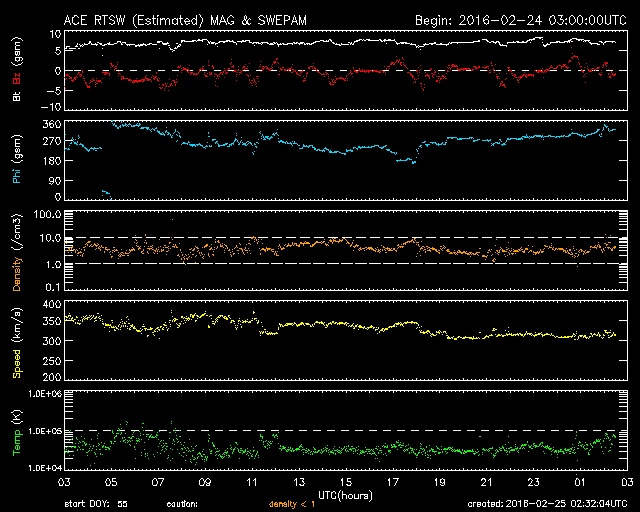 02/24 13~20時(UT)頃にかけて小さな乱れがありましたが、それ以外は概ね穏やかな推移です。