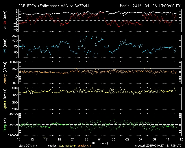 概ね穏やかな推移でしたが、04/27 08時(UT)前後に強い反応がありました。