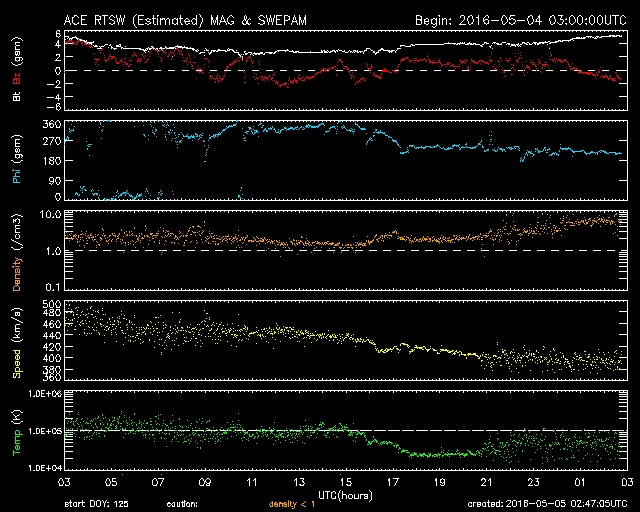 磁場は、北寄りに推移していましたが、現在は僅かに南寄り。