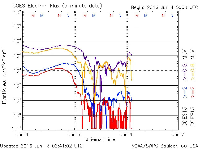 非常に穏やかな推移でしたが、06/05 03時(UT)くらいからやや乱れ始め、17時(UT)くらいに強い反応がありました。。