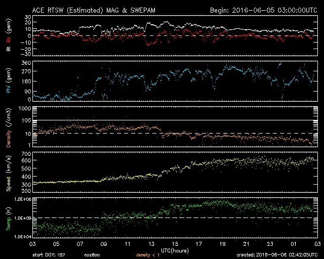 非常に穏やかな推移でしたが、06/05 09時(UT)以降、やや乱れが出ています。