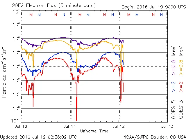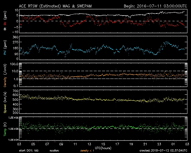 21時(UT)過ぎに少し反応があった後、07/12 01時(UT)以降、強い反応が出ています。この後乱れが出るようなら要注意。