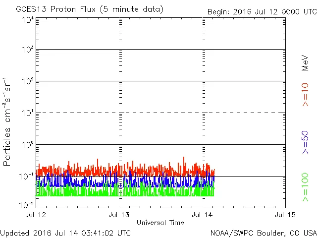 太陽フレアと黒点数(2016年07月14日更新)※コロナホール影響下