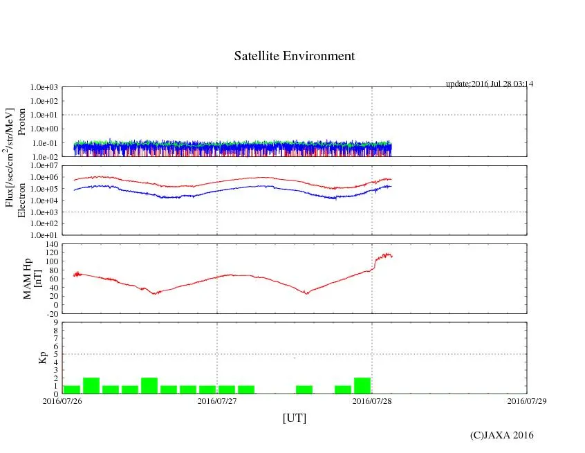 穏やかな推移でしたが、UTで07/28になった頃から急激な落ち込みが出ています。この後乱れが出るようなら要注意。