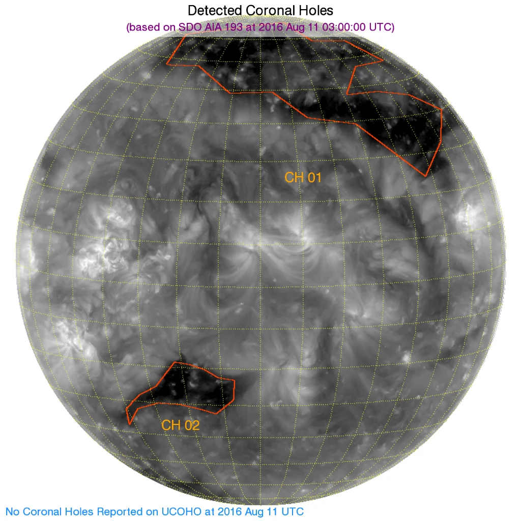 太陽フレアと黒点数(2016年08月11日更新)※コロナホール影響下