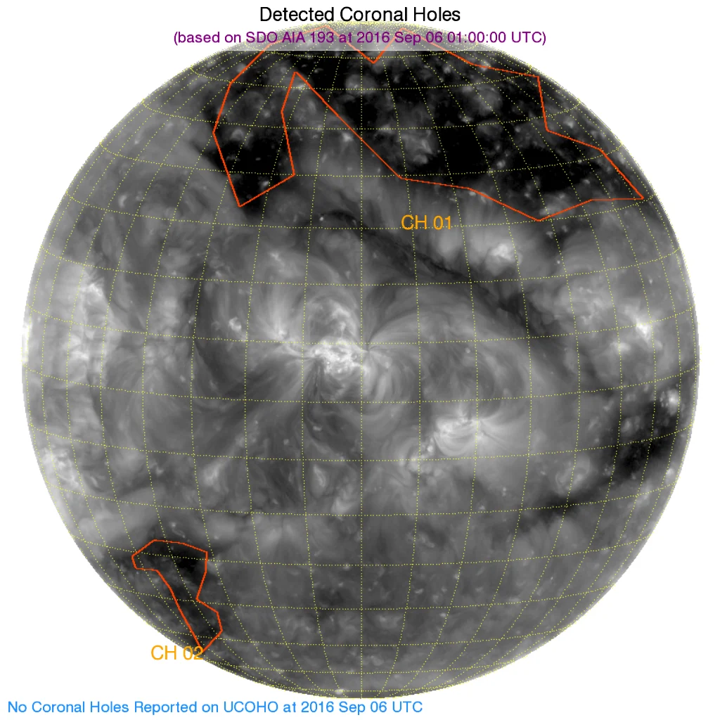 南半球正面のコロナホールは消滅。南半球東側に新しいコロナホールがカウントされました。