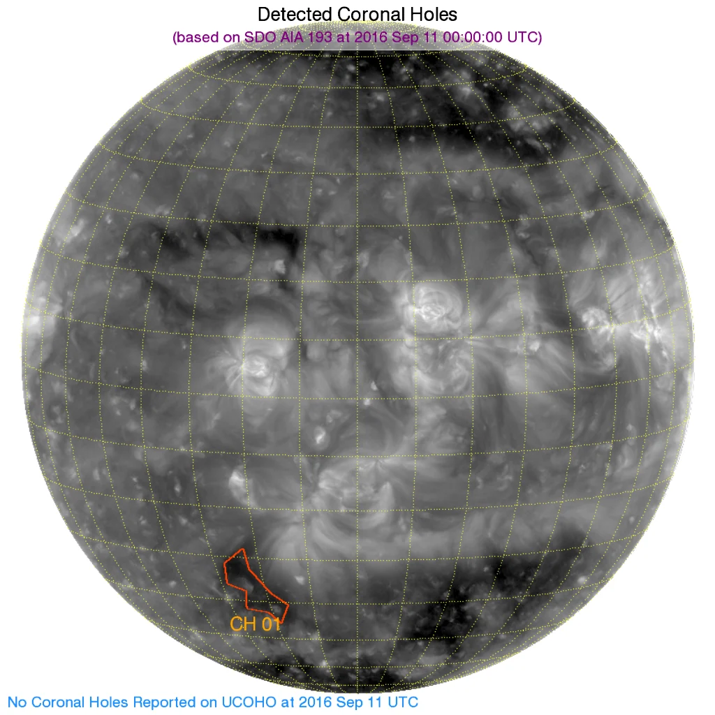 南半球の極の近くの東側に小さなコロナホールがカウントされました。