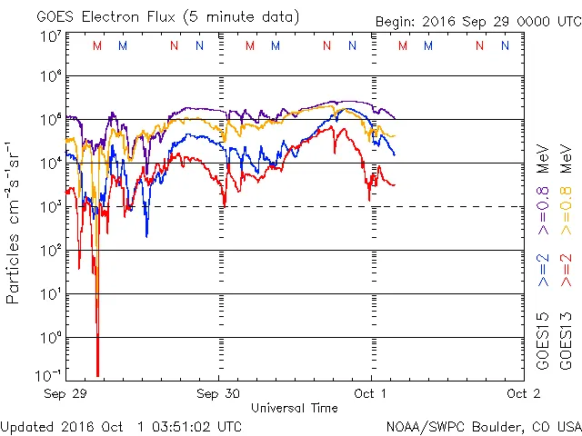 太陽フレアと黒点数(2016年10月01日更新)※コロナホール影響下
