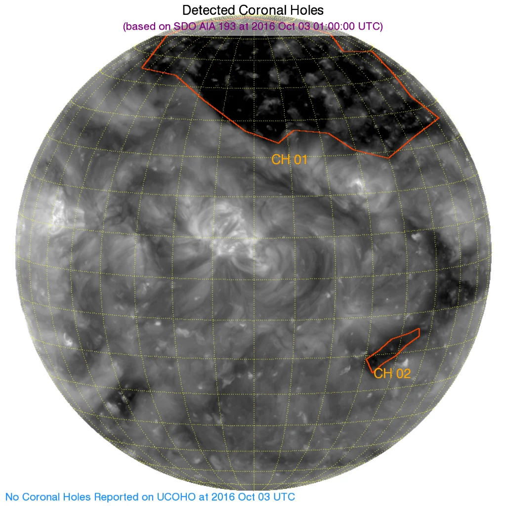 南半球西側のコロナホールは縮小しながら更に西へ移動。