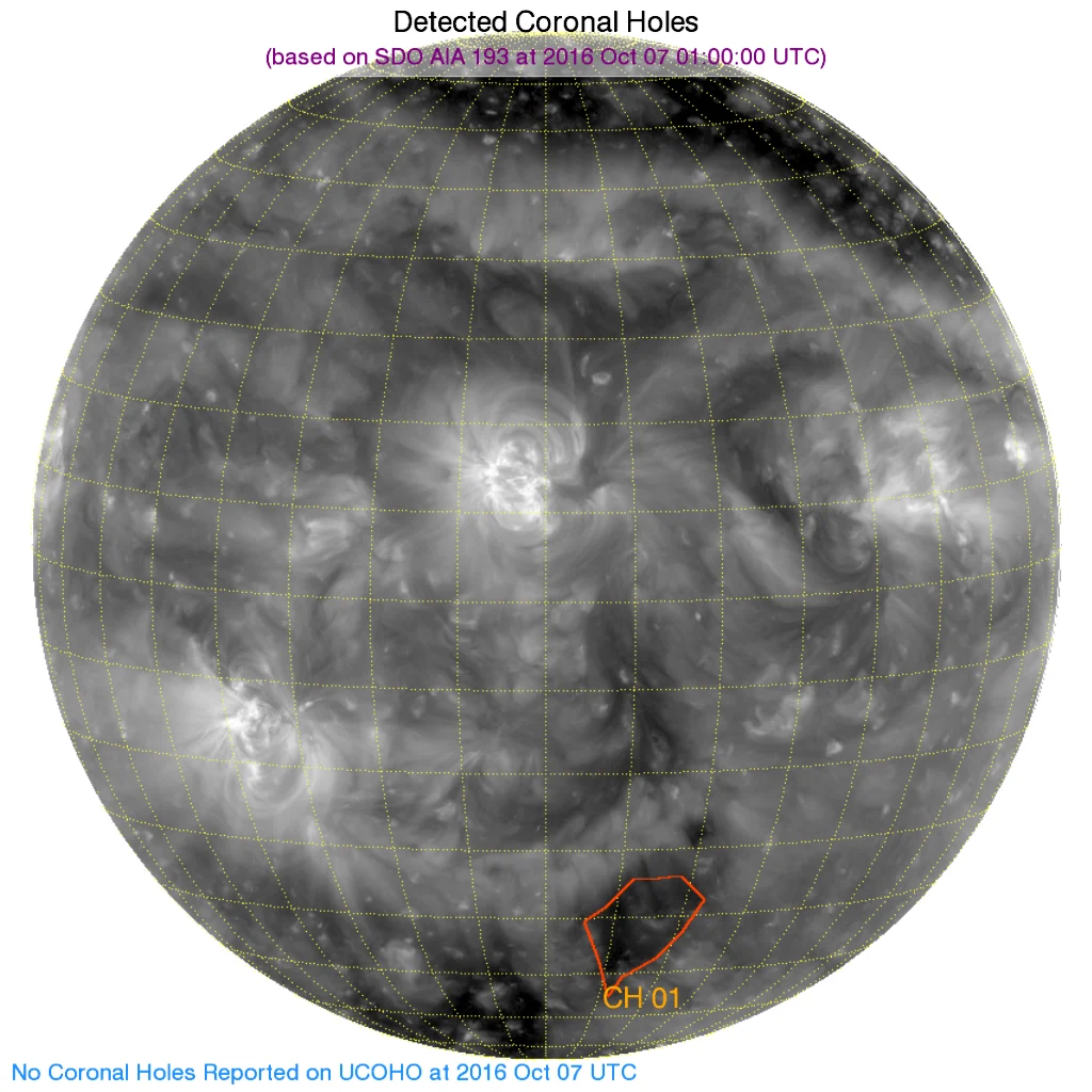 ※南の極付近(やや西より)に小さなコロナホールがあります。