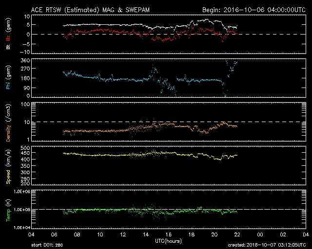 10/06 01時(UT)前後に極小さな乱れがありました。10/07 01時(UT)頃からやや乱れの兆候があります。