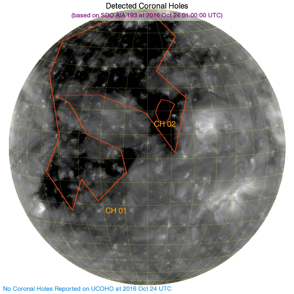 この巨大なコロナホールの影響は、25日くらいから届き始めるかも。