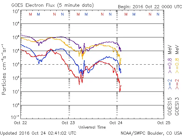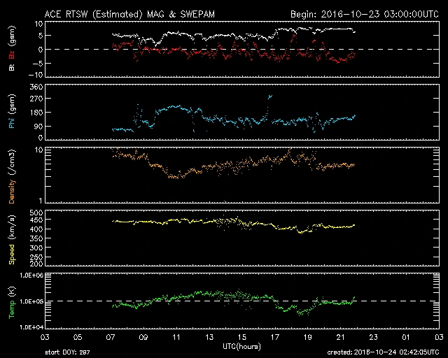 レベルは降下中。10/23 05~08時(UT)くらいにかけて少し乱れがありました。