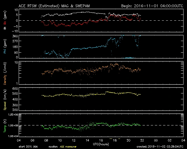 11/01 10~13時(UT)頃にかけて小さな乱れがありましたが、それ以外に大きな乱れ等は出ていません。
