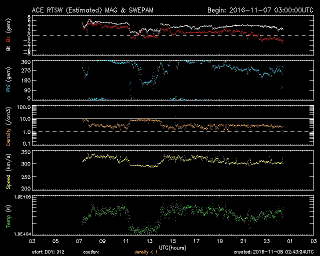 磁場は、やや北寄りに振れた後、現在はやや南寄りに振れています。