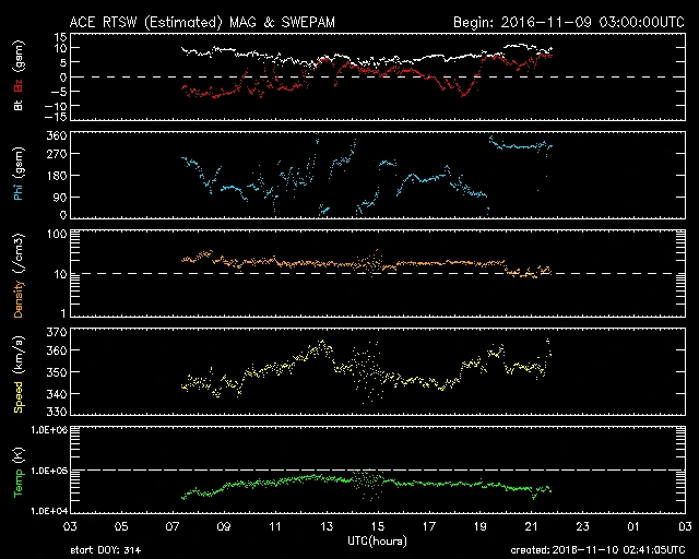 穏やかな推移でしたが、11/09 10時(UT)以降、幅のあるラインで推移し、所々反応も出ています。
