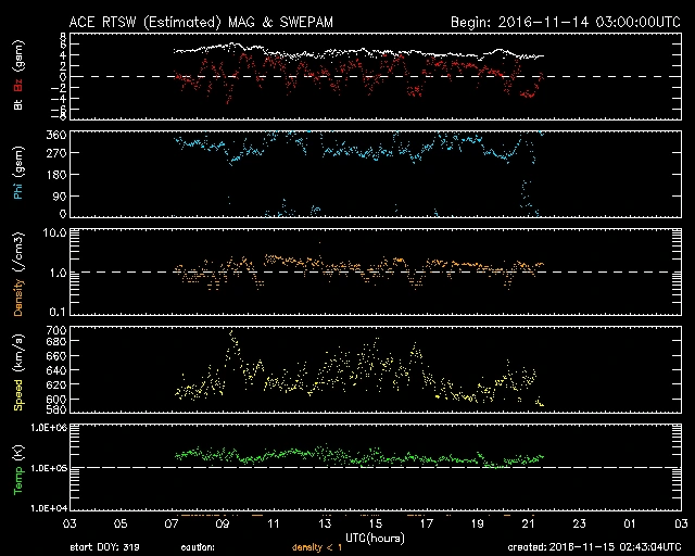 速度は少し下がり、現在600km/s前後で推移しています。※速度にバラつきあり