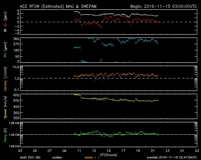 11/15 11時(UT)くらいに小さな反応があり、所々幅のあるラインで推移していますが、大きな乱れや反応はありません。