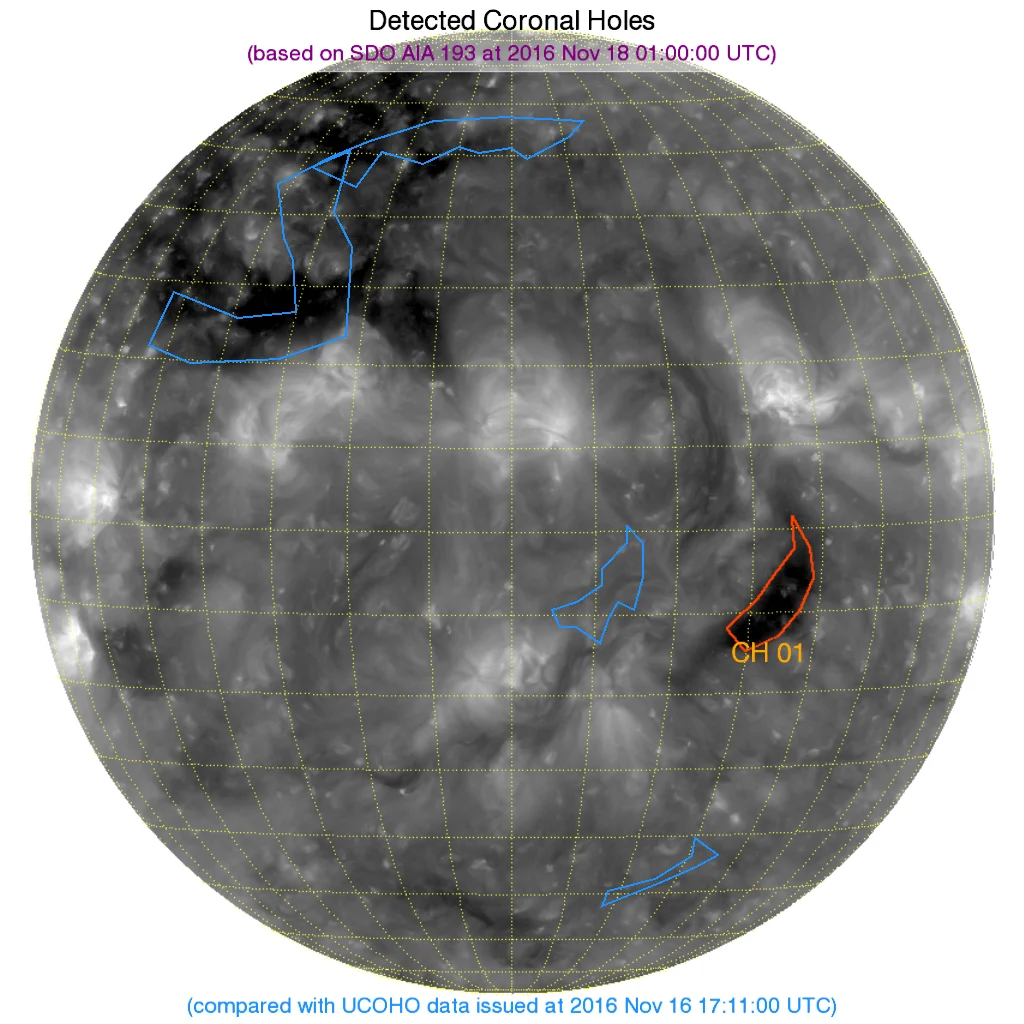 北半球東端のコロナホールはカウントされていません。